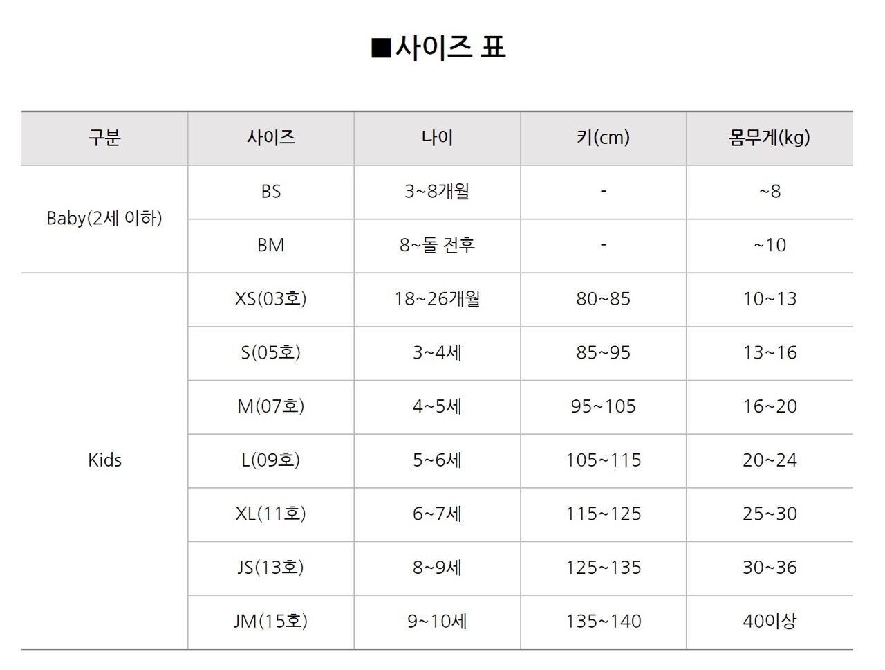 ※ model : 99㎝ / 15kg / S着用、137cm / 30kg / JM着用